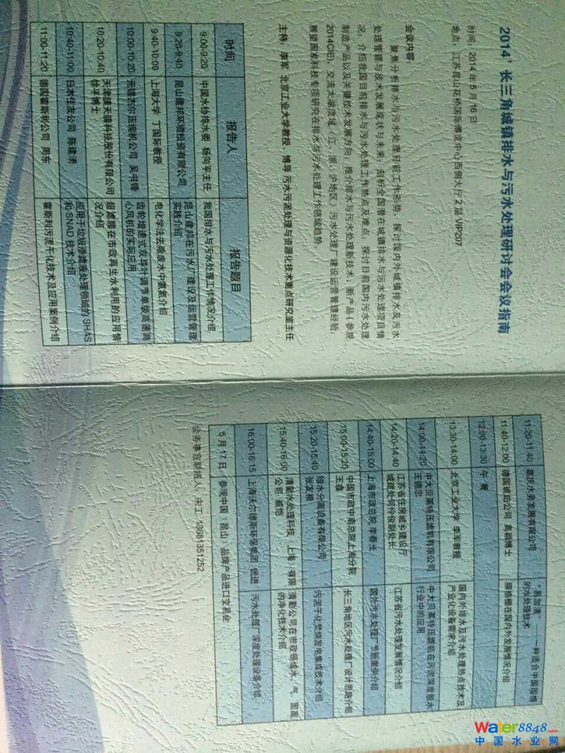 2014'長(zhǎng)三角城鎮(zhèn)排水與污水處理研討會(huì) 邀請(qǐng)函 —— 中國(guó)(昆山)品牌產(chǎn)品進(jìn)口交易會(huì)(中國(guó)首個(gè)經(jīng)國(guó)務(wù)院批準(zhǔn)的國(guó)家級(jí)專業(yè)進(jìn)口交易會(huì),商務(wù)部、中國(guó)貿(mào)促會(huì)、江蘇省政府共同主辦)框架系列活動(dòng) 會(huì)議組織機(jī)構(gòu): 主辦:江蘇省貿(mào)促會(huì)、中國(guó)(昆山)品牌產(chǎn)品進(jìn)口交易會(huì)事務(wù)處 支持: 中國(guó)城鎮(zhèn)供水排水協(xié)會(huì)排水專業(yè)委員會(huì)、中國(guó)土木工程學(xué)會(huì)水工業(yè)分會(huì)排水委、 中國(guó)市政工程華北設(shè)計(jì)研究總院 協(xié)辦:全國(guó)污泥處理處置促進(jìn)會(huì)(籌)、《中國(guó)建設(shè)報(bào)》城鎮(zhèn)周刊、《中國(guó)給水排水》 威立雅水務(wù)工程(北京)有限公司 得利滿公司 博天環(huán)境集團(tuán)公司 承辦:《亞洲環(huán)!肪庉嫴 中國(guó)水業(yè)網(wǎng)(www.laotiehugong.com ) 顧問(wèn):楊向平,中國(guó)城鎮(zhèn)供水排水協(xié)會(huì)排水委主任、中國(guó)環(huán)保產(chǎn)業(yè)協(xié)會(huì)副會(huì)長(zhǎng)、全國(guó)污泥處理處置促進(jìn)會(huì)(籌)理事長(zhǎng) 李 軍 北京工業(yè)大學(xué) 博導(dǎo)、教授,污水污泥處理與資源化技術(shù)研究室主任 會(huì)議內(nèi)容: 聚焦分析排水與污水處理目前工作形勢(shì),探討國(guó)內(nèi)外城鎮(zhèn)排水及污水處理管理與技術(shù)發(fā)展現(xiàn)狀與未來(lái);剖析全國(guó)潛在城鎮(zhèn)排水與污水處理項(xiàng)目布點(diǎn)情況;介紹我國(guó)目前排水與污水處理工作熱點(diǎn)及難點(diǎn)、;推介排水與污水處理新技術(shù)、新產(chǎn)品,交流長(zhǎng)三角重點(diǎn)區(qū)域排水與污水處理典型案例建設(shè)與管理經(jīng)驗(yàn)(蘇州污水處理、無(wú)錫排水管網(wǎng)、上海運(yùn)行管理、杭州新型污水處理技術(shù)應(yīng)用示范等);展望國(guó)家科技重大專項(xiàng)在排水與污水處理工作趨勢(shì)。 另外,有意協(xié)辦或在會(huì)上進(jìn)行交流、宣傳的工程公司、設(shè)備廠家等也可與編輯部聯(lián)系。大會(huì)發(fā)言:8000元/30分鐘。 七、會(huì)議時(shí)間及地點(diǎn)(預(yù)定酒店住房) 會(huì)議住宿與用餐: 昆山世廷花園酒店,準(zhǔn)四星標(biāo)準(zhǔn)。地址:蘇州昆山花橋綠地大道231弄6號(hào)樓,近云橋路,0512-57265777,咨詢酒店可以告知參加昆山進(jìn)口交易會(huì)。會(huì)議統(tǒng)一安排住宿。 會(huì)議乘車與參會(huì): 會(huì)議入住酒店由統(tǒng)一大巴前往會(huì)場(chǎng)(具體乘車時(shí)間可以看酒店大廳通知牌) 備注:本次預(yù)定酒店房間比較緊張,請(qǐng)參會(huì)代表4月28日前向組委會(huì)預(yù)定,酒店預(yù)訂截至:2014年4月28日。4月28日后回執(zhí)的與會(huì)代表,若要求會(huì)務(wù)組預(yù)訂房間,請(qǐng)打先電話確認(rèn)(13681351252)。 八、會(huì)議注冊(cè)和發(fā)票事宜 會(huì)議采用會(huì)前注冊(cè)制,參會(huì)人員須聯(lián)系會(huì)議組委會(huì)提前注冊(cè),政府、設(shè)計(jì)院、高校、研究所、污水處理廠(排水管理處)會(huì)議費(fèi)為600元/人,工程技術(shù)、設(shè)備企業(yè)會(huì)議費(fèi)為800元/人。會(huì)議統(tǒng)一安排住宿,差旅費(fèi)、住宿費(fèi)自理。因?yàn)闄C(jī)打發(fā)票只能在雜志社開(kāi)具,如想提前或現(xiàn)場(chǎng)拿到發(fā)票,請(qǐng)通過(guò)銀行提前匯款致會(huì)務(wù)組。 九、組委會(huì)聯(lián)系方式 會(huì)務(wù)組聯(lián)系方式: 聯(lián)系人: 高飛、張春敏 ( 張春敏 總編 熱線:158 2279 4750 QQ:1811838732 ) 電 話:010-64631302、13391593993、 13681351252 傳 真:010-64617055 郵 箱:1811838732 @qq.com ※ 本次會(huì)議注冊(cè)采取提前預(yù)約方式,名額僅限于100人,需要住宿的請(qǐng)?zhí)崆案嬷獣?huì)務(wù)組。 2014'長(zhǎng)三角城鎮(zhèn)排水與污水處理研討會(huì)會(huì)議日程 時(shí)間:2014年 5月 16日 地點(diǎn):江蘇昆山花橋商務(wù)城博覽中心(花橋經(jīng)濟(jì)開(kāi)發(fā)區(qū)綠地大道1588號(hào))