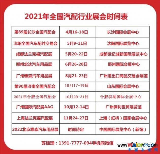 參展范圍:發(fā)動(dòng)機(jī)/底盤(pán)及車(chē)身/汽車(chē)電器/油品、養(yǎng)護(hù)用品、汽車(chē)用品、汽保設(shè)備及工具/材料及通用件等