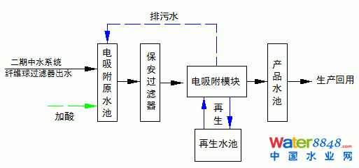 該回用水及提質(zhì)工程的核心工藝采用常州愛(ài)思特凈化設(shè)備有限公司電吸附專利技術(shù)。電吸附提質(zhì)后的1萬(wàn)噸/日回用水達(dá)到化工生產(chǎn)工藝用水標(biāo)準(zhǔn),可用作工藝用水、鍋爐補(bǔ)充水等。該套電吸附裝置可將污水含鹽量由1000mg/L降至250mg/L,懸浮物由10毫克/升降至3毫克/升,濁度由10NTU降至1NTU,氨氮由10毫克/升降至5毫克/升,CODcr由25毫克/升降至10毫克/升。裝置投產(chǎn)后,每年可削減污染物排放CODcr9293噸,BOD54854噸,氨氮1560噸,有效改善區(qū)域水體質(zhì)量,同時(shí)有利于緩解嚴(yán)重缺水城市的供水壓力。