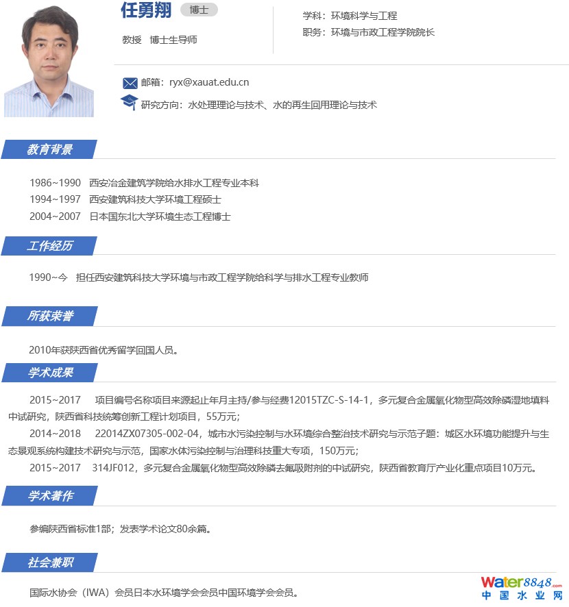 任勇翔,男,生于1968年5月,中共黨員,陜西耀縣人。西安建筑科技大學環(huán)境與市政工程學院教授、博士生導師、學科帶頭人、處長。