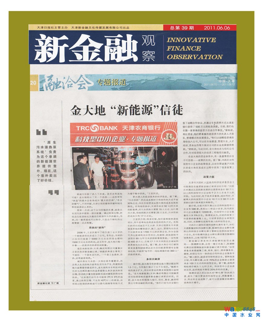 金大地 “新能源”信徒(圖) ‘原生污水源熱泵系統(tǒng)’負(fù)責(zé)為這個(gè)單調(diào)的新能源世界提供意外,F(xiàn)在,這個(gè)意外賣出了好價(jià)錢。 家庭污水除了進(jìn)入下水道,是否還有其他可能?金大地給出了另一個(gè)選擇——這些帶有“體溫”的廢水會(huì)變身成為“夏天的空調(diào)”、“冬天的暖氣”。不用懷疑,天津公館的整體供暖和制冷系統(tǒng)就是這么來的。 簡(jiǎn)單一點(diǎn)說,這個(gè)公司所做的生意,就是從生活污水中提取一部分能量,通過熱泵壓縮,把低品位能源轉(zhuǎn)化為高品位能源作為供熱輸出。當(dāng)然,同一套系統(tǒng)也可以制冷,只是這個(gè)轉(zhuǎn)化的過程需要一點(diǎn)點(diǎn)智慧。 昂貴的“廢熱” 2006年,王安民看中了哈爾濱工業(yè)大學(xué)的一個(gè)新能源項(xiàng)目并成立了公司。5年后,當(dāng)初的小公司已收獲了5000萬(wàn)元左右的營(yíng)業(yè)額和1500萬(wàn)元左右的利潤(rùn)。這五年中,金大地只做一件事——把廢棄的熱源變成能量。 金大地新能源(天津)集團(tuán)有限公司董事長(zhǎng)王安民告訴新金融記者,“熱能的來源主要有三個(gè)途徑:一個(gè)是生活污水,一個(gè)是工業(yè)廢熱、余熱,還有就是地?zé)帷?rdquo; 城市原生污水的一大特征是冬暖夏涼,而且有人生活的地方就有生活污水產(chǎn)生,有建筑的地方就需要供暖或供冷。金大地利用專利技術(shù)將污水與周圍環(huán)境間的溫差提取出來并使用熱泵壓縮,僅消耗少量電能就能完成對(duì)建筑的供冷和供熱。“比如我們從污水中吸取3℃至5℃的溫差,通過熱泵壓縮,可達(dá)到45℃以上的高溫,這些經(jīng)過處理的熱能就可以替代燒煤等傳統(tǒng)方式為樓宇集中供熱。”王安民說。 更為誘人的是該技術(shù)的經(jīng)濟(jì)效益。據(jù)了解,“污水供熱”的總成本相對(duì)于傳統(tǒng)供熱方式節(jié)省30%左右,而且在投資及運(yùn)營(yíng)方面的成本也有所降低。在傳統(tǒng)供熱中,天津市規(guī)定92元/平方米的配套費(fèi),而污水供熱只需要70元左右;運(yùn)行費(fèi)用方面,傳統(tǒng)供熱方式需要25元左右,污水供熱的成本只有17元左右。 王安民介紹,很多時(shí)候,他們是根據(jù)熱源找項(xiàng)目,而不是單純選擇成本低的供熱方式。在他們的項(xiàng)目成就里不乏大牌:天津公館原生污水源熱泵系統(tǒng)的整體設(shè)計(jì)、施工、運(yùn)行、管理均出自這個(gè)注冊(cè)資本金1700萬(wàn)元的民營(yíng)企業(yè),作為全國(guó)可再生能源利用示范項(xiàng)目,住建部、財(cái)政部給予該項(xiàng)目80元/平方米的國(guó)家最高獎(jiǎng)勵(lì),一次性獎(jiǎng)勵(lì)400多萬(wàn)元;占地17萬(wàn)平方米的北京南站供熱系統(tǒng)也出自這里。據(jù)了解,金大地公司已被國(guó)家發(fā)改委和財(cái)政部認(rèn)定為合同能源管理專業(yè)服務(wù)機(jī)構(gòu),可獲得“每節(jié)約一噸標(biāo)準(zhǔn)煤補(bǔ)助360元”的政府獎(jiǎng)勵(lì)。 多層次融資 據(jù)介紹,金大地今年的營(yíng)業(yè)收入預(yù)計(jì)能達(dá)到1.5個(gè)億。今年他們簽訂了幾個(gè)大項(xiàng)目。“隨著市場(chǎng)的逐步擴(kuò)大,項(xiàng)目對(duì)資金的需求表現(xiàn)得日益明顯。”金大地新能源(天津)集團(tuán)有限公司投融資項(xiàng)目經(jīng)理梁棟在接受新金融記者采訪時(shí)說。目前,金大地在積極地與銀行、信托、基金、融資租賃公司等金融機(jī)構(gòu)對(duì)接。“我們已經(jīng)與興業(yè)銀行簽了戰(zhàn)略合作協(xié)議,并通過專利質(zhì)押方式從浦發(fā)銀行獲得了500萬(wàn)元的貼息貸款。目前,我們也在跟一家香港的投資方洽談合作事宜。”梁棟說,相比資金,他們更看重的是投資方的先進(jìn)人才團(tuán)隊(duì)、管理模式和發(fā)展理念。“他們以戰(zhàn)略投資者的身份加入公司,可以在市場(chǎng)渠道、管理方法、人才培訓(xùn)、資本運(yùn)作等方面對(duì)公司的長(zhǎng)遠(yuǎn)發(fā)展提供幫助。”梁棟說。與此同時(shí),金大地也在與信托公司合作,針對(duì)投資較大的優(yōu)質(zhì)工程做項(xiàng)目融資。 在金大地的資金體系中,有一條重要的分支不可忽視——政策的支持。據(jù)了解,河西區(qū)對(duì)科技型中小企業(yè)的政策很多,從初創(chuàng)期就落戶河西區(qū)的金大地在其成長(zhǎng)過程中受到了很多政策上的扶持。 政策力挺 天津市河西區(qū)人民政府科學(xué)技術(shù)委員會(huì)主任陳德安在接受新金融記者采訪時(shí)介紹:“河西區(qū)對(duì)通過認(rèn)定的新發(fā)展的注冊(cè)資本金在50萬(wàn)元以上的科技型中小企業(yè)給予2萬(wàn)元至8萬(wàn)元的補(bǔ)貼。與此同時(shí),給予技術(shù)含量高、成長(zhǎng)性好、貢獻(xiàn)率大的科技型中小企業(yè)10萬(wàn)元至60萬(wàn)元的資助以進(jìn)行技術(shù)提升和轉(zhuǎn)型。” 據(jù)介紹,目前河西區(qū)通過認(rèn)定的科技型中小企業(yè)有586家,類型以工程設(shè)計(jì)居多,而河西區(qū)中小企業(yè)數(shù)量在12000家,科技型中小企業(yè)數(shù)量?jī)H占其5%左右。陳德安認(rèn)為,目前的首要工作是要把數(shù)量做上去。引進(jìn)更多的企業(yè)來到河西,同時(shí),也要孵化培育有潛力的科技型企業(yè)。 河西區(qū)已建和在建科技孵化器有8