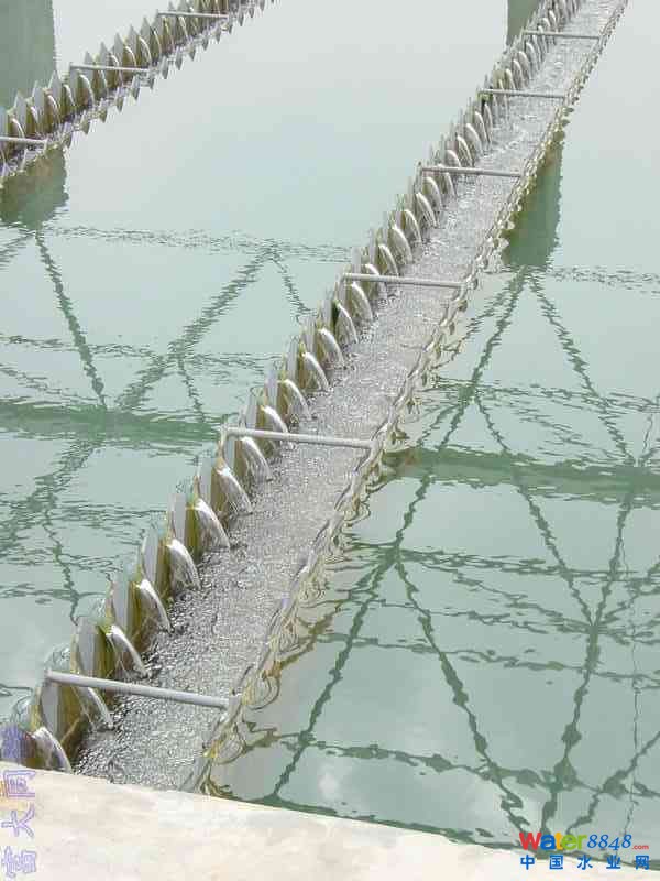 (2)產(chǎn)水量提高后,原絮凝池前2-3格易發(fā)生溢水,將部分池體加高0.5m;沉淀池只對其出水渠擴(kuò)大淹沒孔口;濾池基本不動(dòng);然后絮凝池內(nèi)投入按水廠設(shè)計(jì)規(guī)模計(jì)算好開孔比的渦流絮凝器。