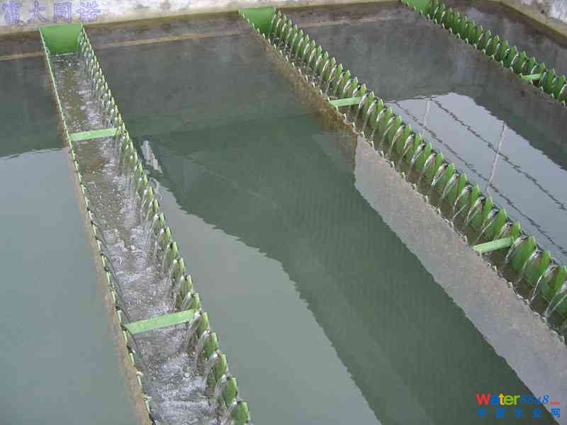 反應沉淀池經過改造,每組凈水能力達到3850噸/時,即55萬噸/天,沉淀池出水濁度小于3NTU,從而保證了濾后水濁度小于1NTU。