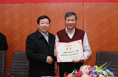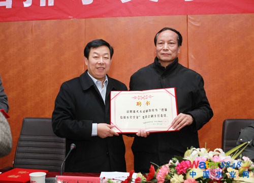 與會(huì)領(lǐng)導(dǎo)為“進(jìn)強(qiáng)給排水獎(jiǎng)學(xué)金”第一屆委員會(huì)委員頒發(fā)了聘書。師生代表也在會(huì)上作了表態(tài)發(fā)言。