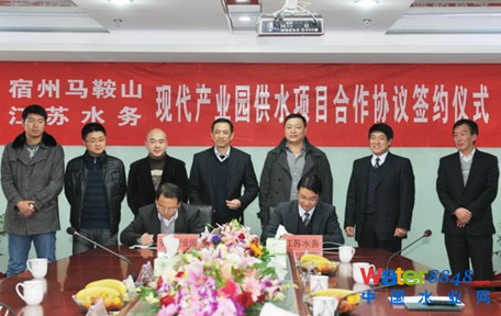 2012年12月14日,江蘇水務(wù)投資有限公司簽訂安徽宿州馬鞍山現(xiàn)代產(chǎn)業(yè)園供水項(xiàng)目合作協(xié)議。公司副董事長(zhǎng)衡一峰、總經(jīng)理彭云清,宿州馬鞍山現(xiàn)代產(chǎn)業(yè)園園區(qū)管委會(huì)相關(guān)負(fù)責(zé)人等參加了簽約儀式。