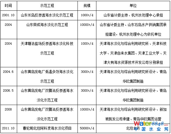 部分已建海水淡化示范工程