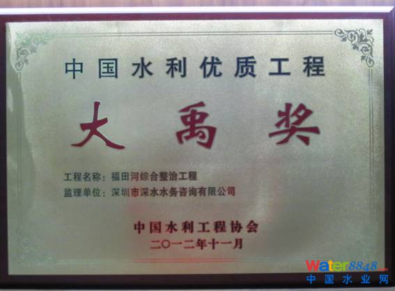 在熱情洋溢的氣氛中,矯勇副部長和劉昆副省長為中國水利工程優(yōu)質(大禹)獎獎杯舉行了揭幕。之后頒發(fā)了2011~2012年度中國水利工程優(yōu)質(大禹)獎獎杯、獎牌和獎章。深圳市深水水務咨詢有限公司監(jiān)理的福田河綜合整治工程項目榮獲“2011~2012年度中國水利工程優(yōu)質(大禹)獎”。公司董事長黃瓊、項目總監(jiān)理工程師孫暉出席大會。