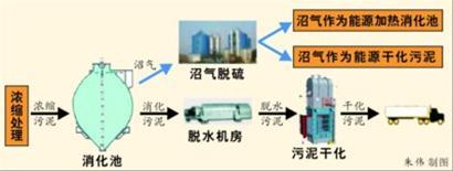 同時(shí),污泥消化過程中每天可產(chǎn)生約4.5萬立方米沼氣,可作為供熱能源循環(huán)利用于系統(tǒng)本身的消化和干化等階段,大大節(jié)約運(yùn)行能耗并降低運(yùn)行成本。據(jù)世界銀行專家預(yù)測,該工程每年還可減少排放二氧化碳約13萬噸。