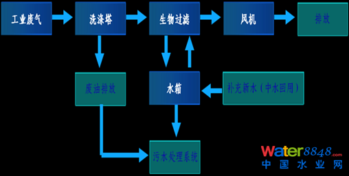 原理: IBF異味氣體生物處理技術(shù)全稱是固定化微生物滴濾池(IBF,Immobilized biological filter),其是在總結(jié)傳統(tǒng)各種生物反應(yīng)器及載體的優(yōu)缺點基礎(chǔ)上,結(jié)合工程實踐,以傳統(tǒng)生物滴濾塔結(jié)構(gòu)為藍(lán)本,借鑒生物濾池工程運行經(jīng)驗,采用一種功能化生物載體,并將復(fù)合工程菌中的微生物-生物酶聯(lián)合除臭降解劑固定在載體上,通過生物降解,達(dá)到分解和消化惡臭物質(zhì)的目的。