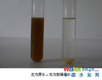 該客戶采用焚燒法處理城市固體垃圾。普通垃圾滲濾液一般是采用機(jī)械擠壓產(chǎn)生的黑色濁液,而此水卻是經(jīng)過(guò)對(duì)垃圾采取加熱等方法處理后產(chǎn)生的濃縮滲透液,呈紅褐色,惡臭、發(fā)酸,濁度極大,酸度較大。日產(chǎn)滲透液100多噸,已經(jīng)過(guò)多家環(huán)保公司的試驗(yàn),無(wú)解決方案。取回水樣20 L,聯(lián)合生物絮凝劑混凝沉淀和其他物化方法,將水樣的CODCr從近5萬(wàn)mg/L降低至500 mg/L左右。