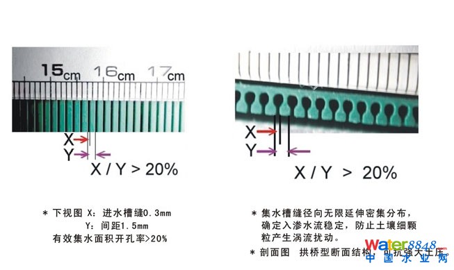 為1mm,而溝槽寬度只有0.3mm,會產(chǎn)生毛細現(xiàn)象,迫使水流由下往上自行倒吸進入毛細管內(nèi),而土壤中被水流夾帶之顆