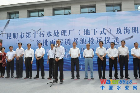 投運儀式上,碧水源董事長文劍平代表項目的BT投資方致辭,他指出,昆明市第十污水處理廠技術(shù)先進、工藝復(fù)雜、施工難度大,是創(chuàng)新和智慧的結(jié)晶,為加強城市基礎(chǔ)設(shè)施建設(shè)、協(xié)調(diào)廠區(qū)周邊城市生活環(huán)境及周圍居民關(guān)系提供了有效的解決方案。同時,污水廠建在地下,節(jié)約土地,占地面積僅是傳統(tǒng)工藝用地的34%,針對解決城市土地緊張具有很好的示范意義。另外,污水廠采用國際先進的膜技術(shù)工藝,把污水廠建成了污染控制中心和城市第二水源,不僅為保護滇池提供了更多的水環(huán)境容量,同時也提高了滇池的水污染負荷容量。文劍平指出,目前,滇池污染治理取得了階段性成果,目前應(yīng)轉(zhuǎn)入水體生態(tài)修復(fù)的新階段。最后,文劍平對政府領(lǐng)導(dǎo)的支持和合作單位的精誠合作表示了感謝,“滇池不僅是昆明的滇池、云南的滇池,更是中華民族的滇池,等我們老了,工作不下去了,我們會因自己為保護滇池付出努力、沒有碌碌無為而感到欣慰,這就是碧水源的心愿!”文劍平慷慨激昂的談到。