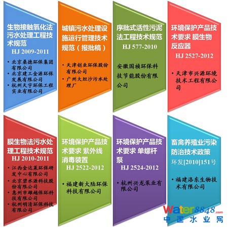 CWPCC先后組織制訂了51項(xiàng)《環(huán)境保護(hù)產(chǎn)品技術(shù)要求》(已發(fā)布)行業(yè)標(biāo)準(zhǔn)及多項(xiàng)國家規(guī)范和標(biāo)準(zhǔn)。其中,有14家企業(yè)參與8個(gè)國家課題中標(biāo)準(zhǔn)和規(guī)范的編制工作,在參與課題的過程中,單位與單位之間相互交流,配合默契;也增加了CWPCC與單位之間的聯(lián)系;與此同時(shí),單位也能夠獲得當(dāng)?shù)卣馁Y金支持或政策優(yōu)惠。其中,有企業(yè)參與的課題和企業(yè)名稱見圖5。