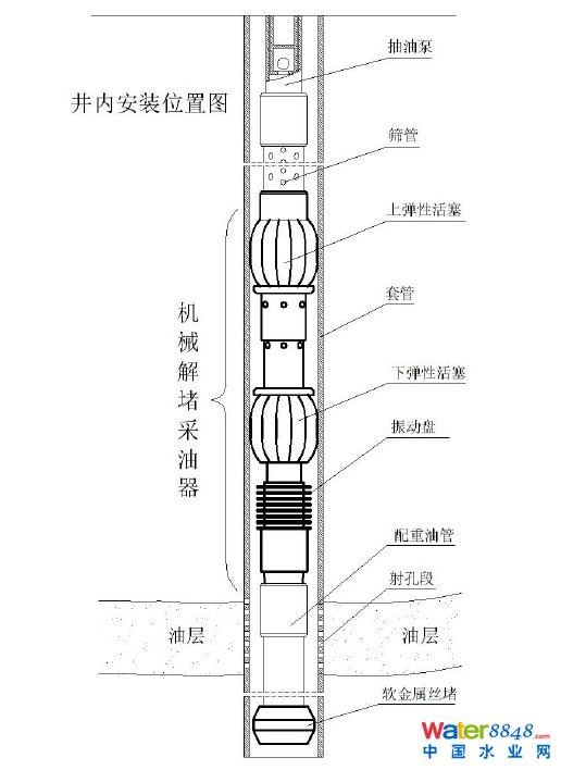 眾所周知,天然地震能使油田增產(chǎn)和延長(zhǎng)油井的產(chǎn)油期,因此,人們很清楚地認(rèn)識(shí)到“振動(dòng)波”對(duì)儲(chǔ)油層的重要作用。在油井內(nèi)安裝“機(jī)械解堵采油器”,就是按照“人為震動(dòng)”也能增產(chǎn)的設(shè)想,集振動(dòng)與聲波于一體,對(duì)油層產(chǎn)生連續(xù)不斷的復(fù)頻波,長(zhǎng)期的對(duì)油井進(jìn)行防蠟、防垢、降粘、解堵處理;最終達(dá)到高產(chǎn)、穩(wěn)產(chǎn)的目的。