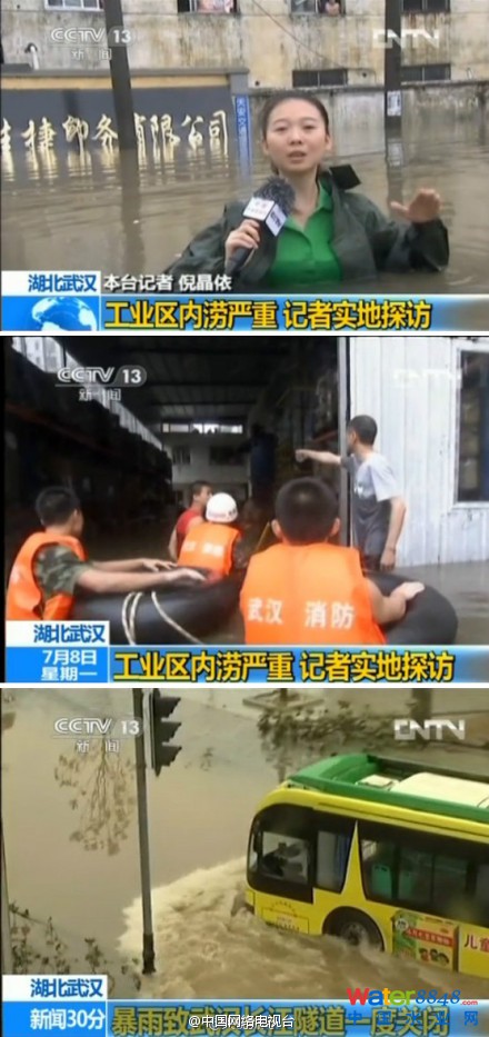 央視記者親身體驗武漢積水:水淹到胸口(圖)