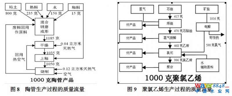 圖8 陶管生產(chǎn)過程的質(zhì)量流量 圖9 聚氯乙烯生產(chǎn)過程的質(zhì)量流量