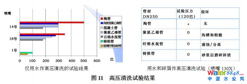 僅用水作高壓清洗的試驗(yàn)結(jié)果 用水和碎屑作高壓清洗試驗(yàn)(噴嘴130X)