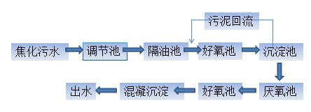 4.廢水可回用。經(jīng)過本工藝技術(shù)處理后的焦化污水能夠達(dá)到相應(yīng)的回用水標(biāo)準(zhǔn),可用于熄焦,若經(jīng)進(jìn)一步深度處理可使焦化污水中的CODcr<15mg/L,可回用于廠內(nèi)循環(huán)冷卻水系統(tǒng),達(dá)到節(jié)約水資源、清潔生產(chǎn)、保護環(huán)境的目的。