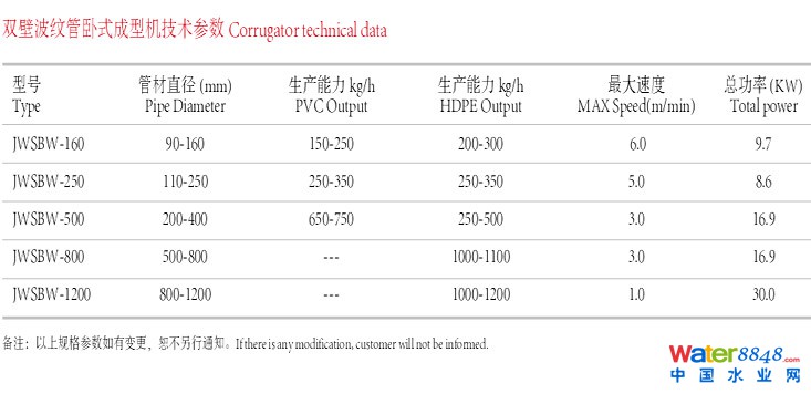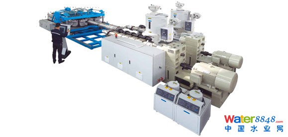 性能和優(yōu)點(diǎn):HDPE/PP/PVC 雙壁波紋管應(yīng)用廣泛。本公司自主研發(fā)的HDPE 雙壁波紋管生產(chǎn)線,擁有多項(xiàng)專利技術(shù)。自動(dòng)化程度高,運(yùn)行穩(wěn)定,產(chǎn)量高。HDPE/PP 采用新型高效單螺桿擠出機(jī),PVC 采用大型平雙或錐雙擠出機(jī),擠出量大。成形機(jī)采用臥式結(jié)構(gòu),梭式傳動(dòng),密封水冷結(jié)構(gòu),真空成型,可實(shí)現(xiàn)在線雙層擴(kuò)口。整線采用電腦人機(jī)界面控制,具有很高的自控性。