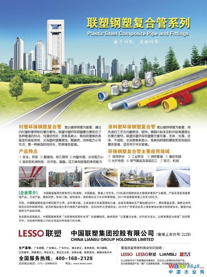 中國聯塑集團控股有限公司(簡稱:中國聯塑,香港上市代號:2128)是中國領先的大型建材家居產業(yè)集團,產品及服務涵蓋管道產品、衛(wèi)浴產品、整體廚房、型材門窗、裝飾板材、消防器材及衛(wèi)生材料等領域。2011年銷售額突破100億元人民幣。