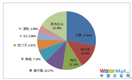 主要膜廠商市場占有率分析圖(按供水項目規(guī)模)