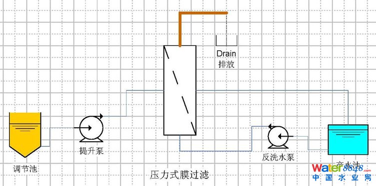 壓力式超/微濾系統(tǒng)是將超/微濾膜組件安裝于膜架內(nèi),通過提升泵的壓力使濾出液透過膜絲過濾層,污染物被截留在過濾層 |