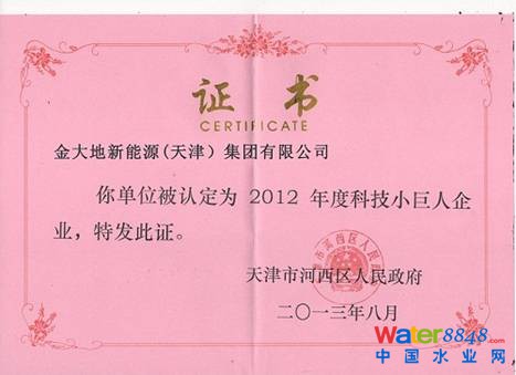 2013年8月,金大地榮獲“天津市科技小巨人企業(yè)”稱號,這是金大地多年來始終堅(jiān)持科技創(chuàng)新的成果,證明了金大地雄厚的科技實(shí)力。