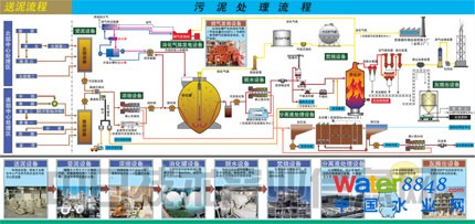 1.來(lái)自污水處理中心的污泥首先經(jīng)過(guò)受泥槽沉淀,毛發(fā)等尺寸較大固態(tài)物體通過(guò)糞渣分離機(jī)抽出,然后被直接送往焚燒爐焚燒。