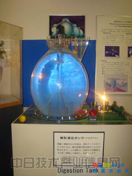 由于消化罐為卵形,功率相對較小的馬達便可完成攪拌工作,污泥也不易在消化罐頂部淤積結(jié)成硬塊。橫濱市北部污泥資源化中心的卵形消化罐高33.6m(地上部分為25.1m),內(nèi)徑為22.7m,容積為6300m3,只在消化罐頂部設置一臺30kW的馬達,即可完成整個消化罐內(nèi)消化污泥的攪拌。