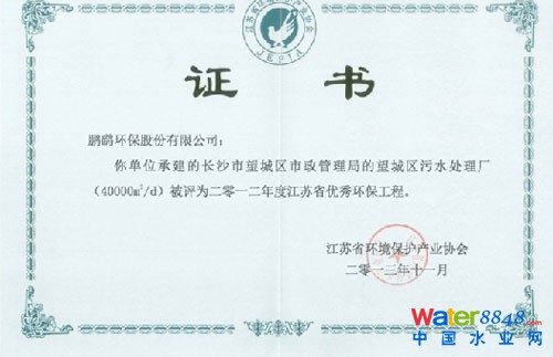 鵬鷂環(huán)保股份有限公司建設(shè)運(yùn)營的長沙望城污水處理廠,經(jīng)江蘇省環(huán)保產(chǎn)業(yè)協(xié)會(huì)專家審核申報(bào)材料、實(shí)地考察,確定該工程工藝技術(shù)先進(jìn)、設(shè)計(jì)科學(xué)合理、工程現(xiàn)場管理好、規(guī)章制度健全、運(yùn)行記錄完善,最終評(píng)為“江蘇省優(yōu)秀環(huán)保工程”。