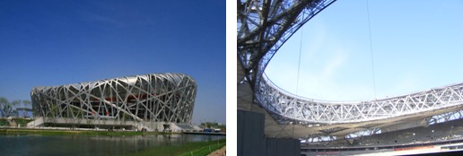 國家體育場(chǎng)是舉辦2008年奧運(yùn)會(huì)的主體育場(chǎng),位于北京市奧林匹克體育中心。規(guī)劃建設(shè)用地面積204155平方米,總建筑面積258000平方米(賽時(shí)),總綠化面積51650平方米(不包括足球場(chǎng)),建筑高度(屋面結(jié)構(gòu)最高點(diǎn))69.21m(相對(duì)標(biāo)高),共有固定座椅80000人,奧運(yùn)會(huì)時(shí)增加臨時(shí)座椅11000人。基座平臺(tái)以上三層為觀眾餐廳,四層為VIP包箱,其余各層為觀眾集散平臺(tái)及為觀眾服務(wù)的特許經(jīng)營商店、衛(wèi)生間、醫(yī)療站,機(jī)電用房;脚_(tái)以下的零層為運(yùn)動(dòng)員休息和生活用房,賽時(shí)傳播、工藝和器材配套用房,設(shè)備機(jī)房,車庫,環(huán)行車道,餐飲用房等。地下一層及夾層為車庫,人員候場(chǎng)區(qū)。