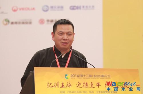 圖為 中國(guó)水網(wǎng)總編、清華大學(xué)環(huán)境學(xué)院環(huán)保產(chǎn)業(yè)研究中心主任傅濤作主題發(fā)言