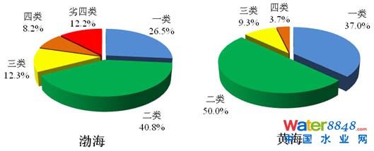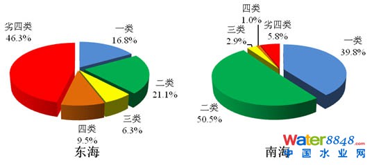2012年四大海區(qū)近岸海域水質(zhì)類別比例 |