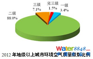 按照監(jiān)測(cè)指標(biāo)的顯示,相比于過去煤煙型污染和沙塵很重的年代而言,近年來很多城市的空氣質(zhì)量有所改善。2012年,全國(guó)城市環(huán)境空氣質(zhì)量總體保持穩(wěn)定。全國(guó)酸雨污染總體穩(wěn)定,但程度依然較重。地級(jí)以上城市環(huán)境空氣質(zhì)量達(dá)標(biāo)(達(dá)到或優(yōu)于二級(jí)標(biāo)準(zhǔn))城市比例為91.4%,與上年相比上升2.4個(gè)百分點(diǎn),超標(biāo)(超過二級(jí)標(biāo)準(zhǔn))城市比例為8.6%。