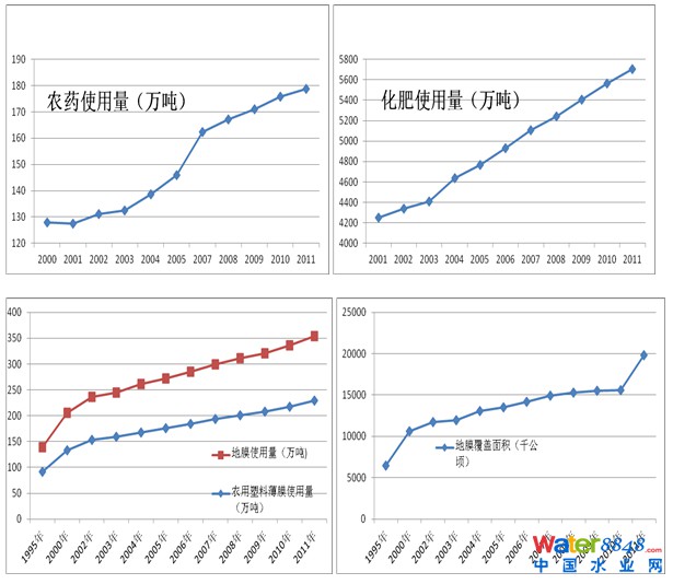 農(nóng)業(yè)生產(chǎn)方式不合理也帶來了生態(tài)環(huán)境問題。大量畜禽糞便、污水、農(nóng)藥、化肥流失,塑料薄膜的大量使用都對(duì)土壤造成威脅。根據(jù)統(tǒng)計(jì)數(shù)字,我國(guó)農(nóng)業(yè)生產(chǎn)過程中,農(nóng)藥、化肥、塑料薄膜的使用量在持續(xù)增長(zhǎng)。