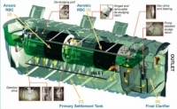(2)預(yù)沉淀后污水流入生物轉(zhuǎn)盤區(qū)的第一生物區(qū),通過(guò)RBC膜片上附載的微生物降解污水中的部分BOD。固體通過(guò)底部的溝槽重新回到PST;處理后的污水經(jīng)提水裝置傳送到第二生物區(qū),在這里進(jìn)行深度處理。