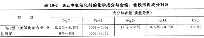 這種催化劑的化學(xué)成分與含鉻廢水處理產(chǎn)生的含鉻、含鐵污泥成分對(duì)比見表10-2。