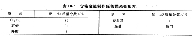 亞硫酸氫鈉法等還原法得到的含鉻污泥中含鐵很少,可用于制作綠色拋光膏;硫酸亞鐵法、電解法等得到的含鉻污泥中含有較多的鐵,可用于制紅色拋光膏。