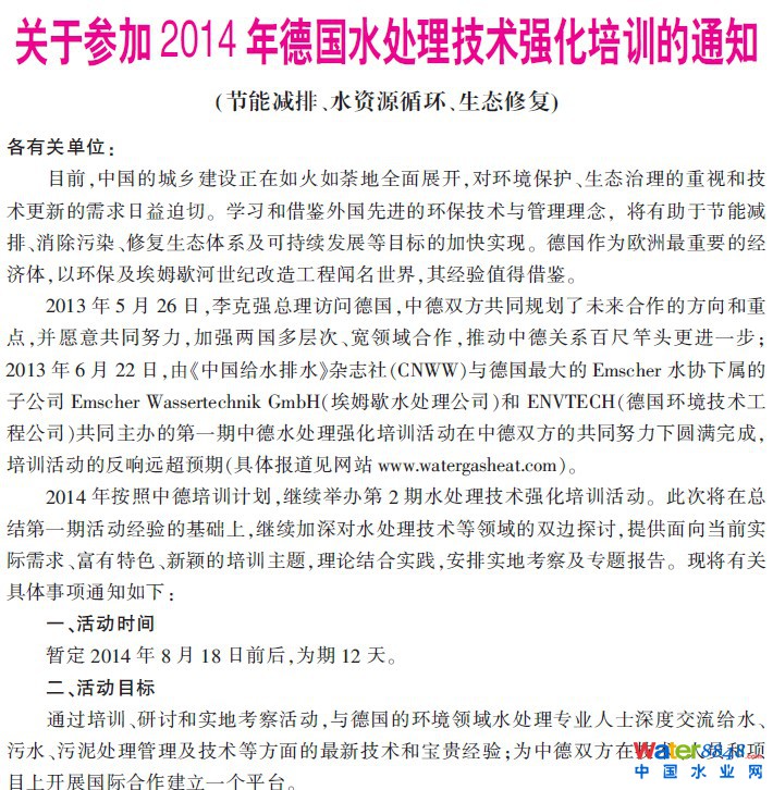 關(guān)于參加2014年德國水處理技術(shù)強化培訓(xùn)及考察的通知