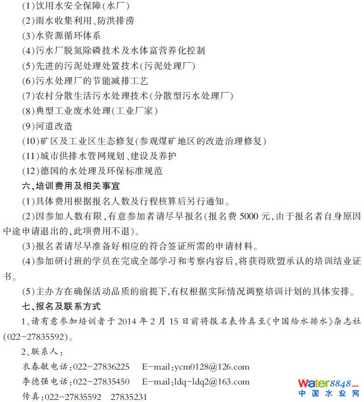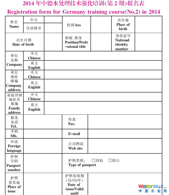 2014年中德水處理技術(shù)強化培訓(xùn)(第2期)報名表