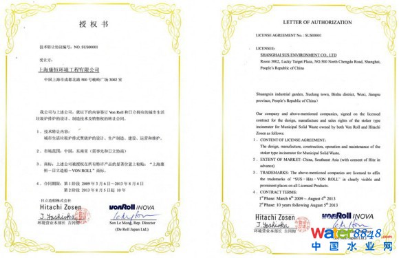 我公司與日立造船株式會社簽訂了由日立造船和Von Roll公司共同擁有的城市生活垃圾爐排爐的設(shè)計(jì)、制造及銷售權(quán)的轉(zhuǎn)讓合同。