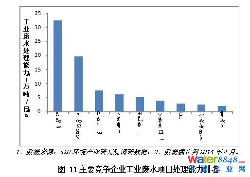 在工業(yè)廢水競(jìng)爭(zhēng)格局方面,從下圖可以看出,美能、津膜科技和旭化成位列前三。其中,美能處理能力占比為39.41%,津膜科技處理能力占比為24.01%。旭化成處理能力占比為9.09%。處理能力占比在5%以上的企業(yè)共有5家,合計(jì)占比為86.15%,由此可見(jiàn),相比于市政項(xiàng)目領(lǐng)域,工業(yè)廢水處理市場(chǎng)集中度相對(duì)分散。