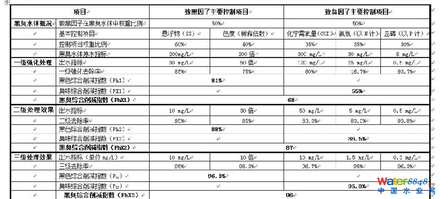 1、污水三種不同深度處理標準工藝“黑臭綜合削減指數(shù)”對比表(僅供黑臭市政溢流水參考)