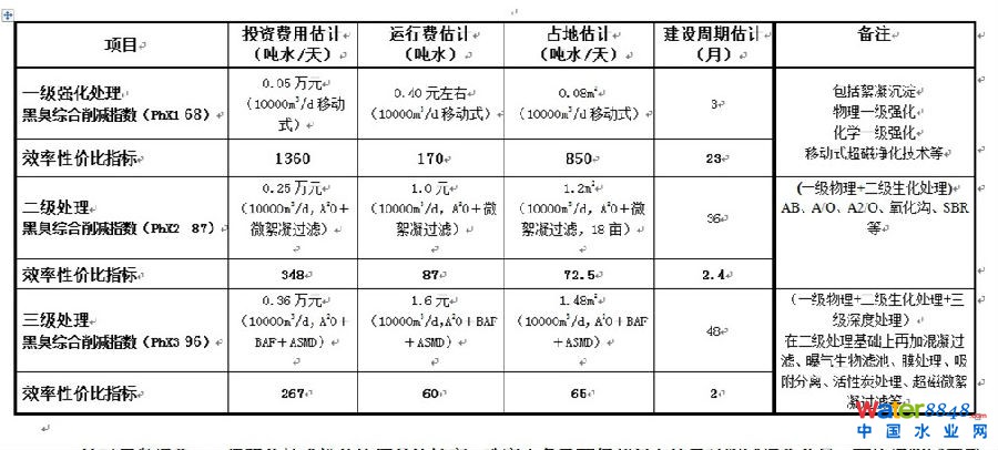 2、污水三種不同深度處理工藝“黑臭綜合削減技術(shù)經(jīng)濟”對比表(僅供參考)