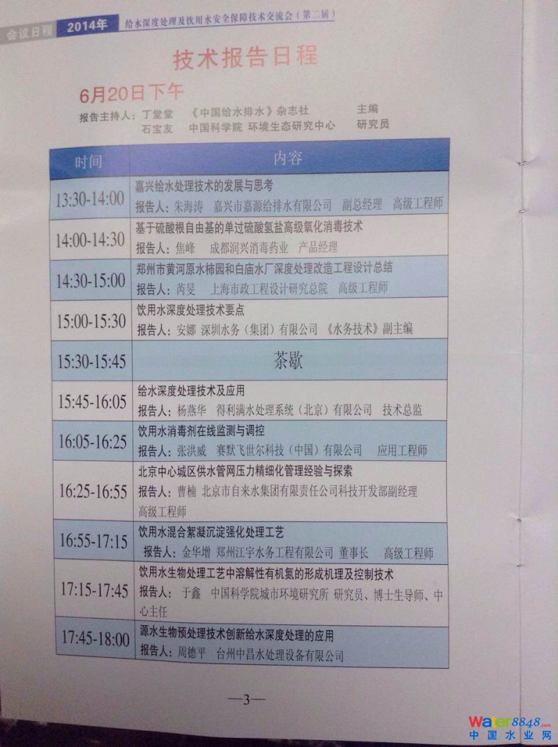 2014年中國給水排水 給水深度處理及飲用水安全保障技術(shù)交流會