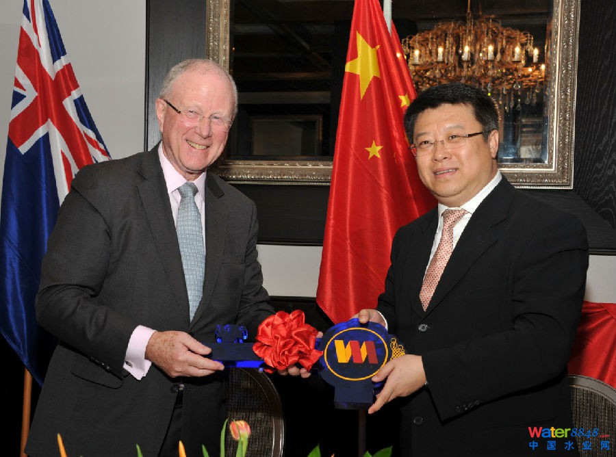 首創(chuàng)集團(tuán)總經(jīng)理王灝接下TPI集團(tuán)CEO Bob Boucher移交象征資產(chǎn)的“水晶鑰匙”
