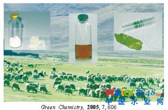 離子液體具有與傳統(tǒng)分子溶劑完全不同的結(jié)構(gòu)特點(diǎn),這決定了其具有很多獨(dú)特的溶解特性。一定結(jié)構(gòu)的基于咪唑鹽的氯負(fù)離子離子液體具有強(qiáng)烈的破壞氫鍵的能力。纖維素、蠶絲纖維、羊毛纖維、殼聚糖、甲殼素等是大量存在于自然界的生物可再生大分子資源。充分利用這些資源來緩解對(duì)石油資源的需求壓力,這方面一直都是綠色化學(xué)、材料化學(xué)、催化化學(xué)領(lǐng)域研究的熱點(diǎn)。由于它們特殊、復(fù)雜的結(jié)構(gòu)特點(diǎn),不能溶于一般的普通分子溶劑,傳統(tǒng)的溶解加工過程中涉及到大量酸、無機(jī)鹽、有毒、昂貴溶劑的使用,這很大程度上制約了這些資源的利用。我們成功的為這些生物資源開發(fā)了一個(gè)基于離子液體為溶劑的簡(jiǎn)單的、環(huán)境友好的加工平臺(tái);诖似脚_(tái),可以制備各種功能性復(fù)合生物降解、保健纖維、膜材料等。 More