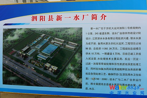 泗陽縣新一水廠是由江蘇深水水務(wù)有限公司投資、深圳市深水海納水務(wù)有限公司獨力投資興建建設(shè)的一座現(xiàn)代化的水廠,它位于京杭大運河泗陽二號橋南側(cè)約1公里處,245省道東側(cè)的城南徐莊村,取水水源為成子湖,備用水源為京杭大運河,工程總投資預(yù)計為1.14億元,設(shè)計供水能力為日供水10萬噸。分兩期建成,一期建設(shè)工程于2013年4月3日正式開工,供水能力為日供水5萬噸。工程投資7492萬元。新一水廠采用先進的活性炭深度處理工藝,確保供水水質(zhì)提前滿足生活飲用水新國標(GB5794-2006)的106項水質(zhì)要求,達到了世界先進水平。同時,還增建尾水處理設(shè)施,將反洗水和排泥水回收利用,大幅提升自來水處理后廢水的利用效率。