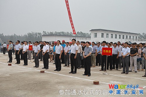 出席通水儀式的有:宿遷市水務(wù)局局長鄭干先,泗陽縣委書記、縣人大主任李榮錦,縣委副書記、縣長劉海紅,縣委副書記周恒新,縣人大副主任王民,江蘇深水水務(wù)有限公司董事長、深圳市深水海納有限公司總經(jīng)理李海波等。