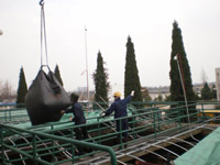 采用400kg~600kg內(nèi)膜外塑大袋;钚蕴吭谶\(yùn)輸過程中,編制袋包裝不得用鐵鉤拖拽,應(yīng)防止與堅(jiān)硬物質(zhì)混裝,不可強(qiáng)烈震動(dòng)、摩擦、踩、砸,嚴(yán)禁拋擲,應(yīng)輕裝輕卸,以減少炭粒破碎,影響使用;同時(shí)防止焦油類物質(zhì)堵塞活性炭孔隙或遮蓋活性炭展開表面;運(yùn)輸中,活性炭不可與有揮發(fā)性的物質(zhì)同時(shí)存放,所有的運(yùn)輸車輛在運(yùn)輸前不得裝卸過任何化學(xué)物質(zhì),特別是揮發(fā)性物質(zhì)。